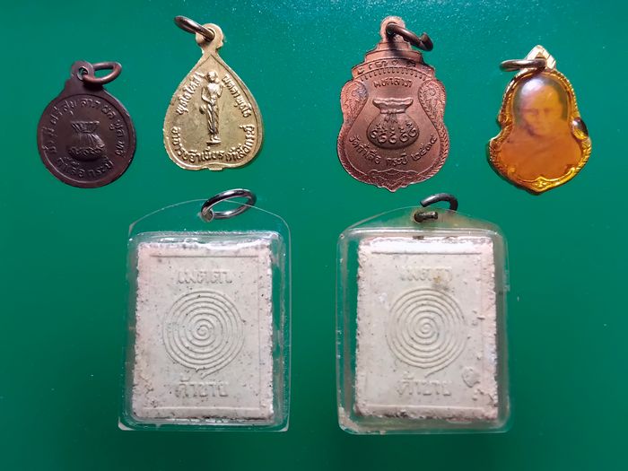 140 .- วัดใจ.@@ เหมา 6 รายการ> เหรียญ 2 , ล็อกเก็ต 2 , ผง 1 , หนัง 1 ( หลวงพ่อจำเนียร วัดถ้ำเสือ กระบี่ ) ค่ะ @@