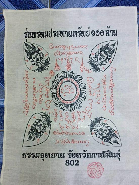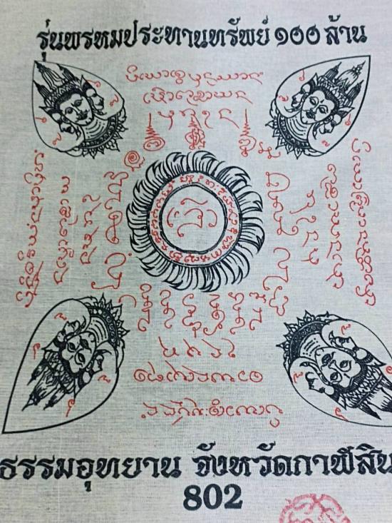 ผ้ายันต์พรหมประทานทรัพย์ 100 ล้าน ปลุกเสกดโย หลวงปู่ศิลา ขนาด 13X17 นิ้ว จัดสร้าง 999 ผืน หมายเลข 802***เคาะแรก** |