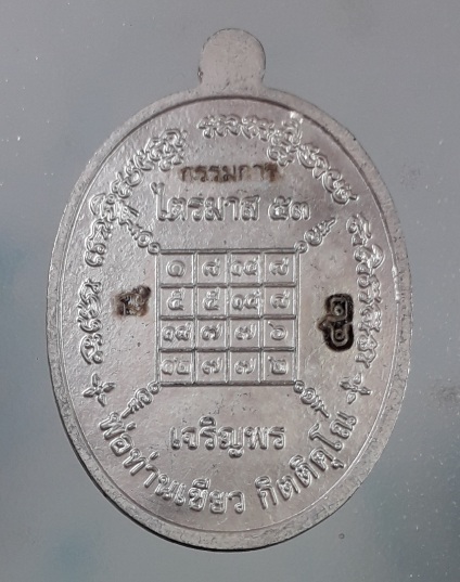 เหรียญมหาจตุรทิศ ไตรมาสเจริญพร ๕๓ พ่อท่านเขียว วัดห้วยเงาะ จ.ปัตตานี ปี2553 เนื้อเงินลงยาสีดำ มีโค๊ดหน้า-หลัง หมายเลข#๔๒ แยกจากชุดกรรมการ พร้อมกล่องกำมะหยี่เดิม