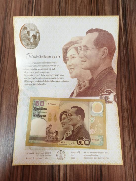 ธนบัตรที่ระลึก50บาทเนื่องในวันราชภิเษกสมรสในหลวงรัชกาลที่9และสมเด็จพระนางเจ้าสิริกิติ์ครบ50ปี แดงเคาะแรก
