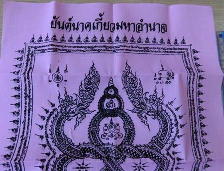 ผ้ายันต์นาคเกี้ยว มหาอำนาจ หลวงพ่อสาคร วัดหนองกรับ สวยเดิมครับ |