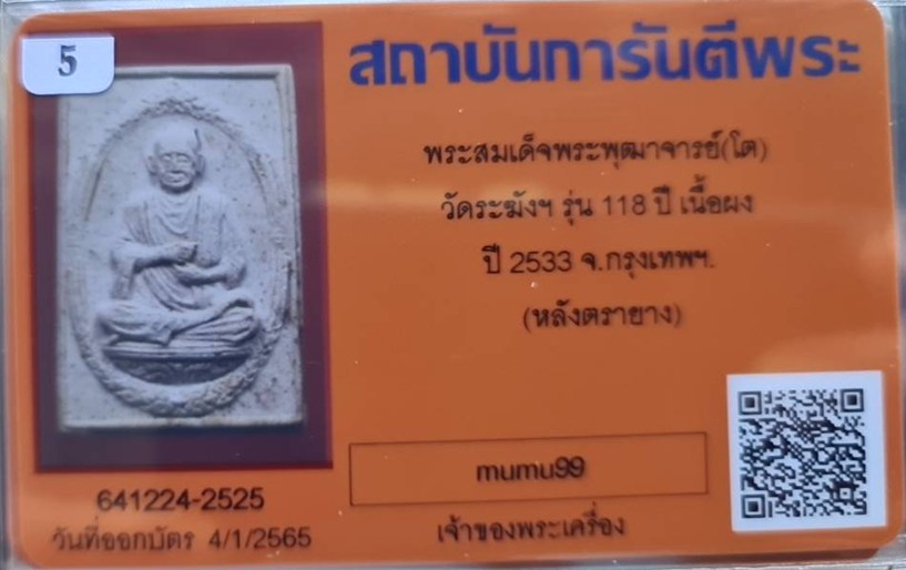 ## สมเด็จวัดระฆัง อนุสรณ์ 118ปี พ.ศ.2533 พิมพ์รูปเหมือน "พระสวยเดิมไม่ผ่านการใช้.หลังปั้มตรายาง...พร้อมบัตรรับรอง.""รับประกันแท้ตลอดฃีพและแท้ตามมาตรฐานสากล....... อนาคตดี ถูกๆเลยครับ.... ราคายังไม่แรง |