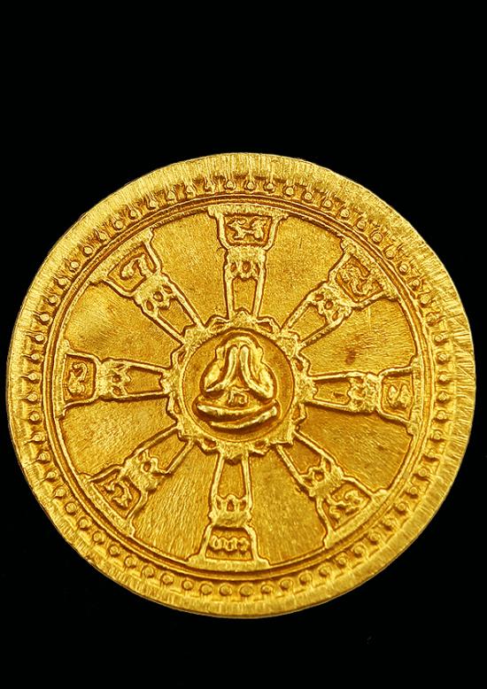 เหรียญธรรมจักรหลังพระปิดตา หลวงปู่แหวน สุจิณฺโณ ปี 2521 เนื้อทองคำ หนัก 7 กรัม เปอร์เซนทอง 80% สวยงามคมชัดลึกครับ