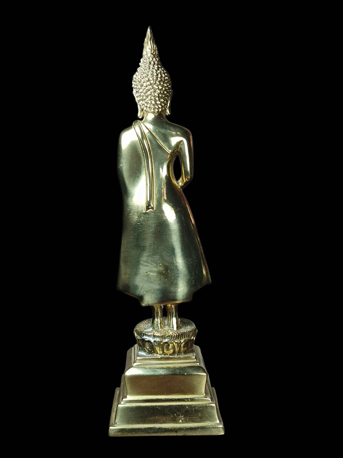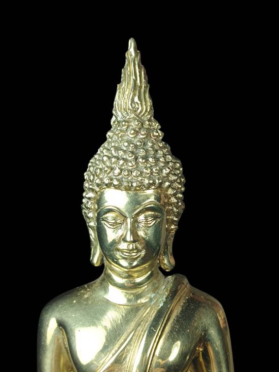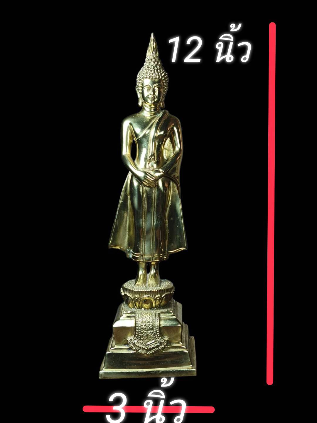 วัดใจ พระบูชาปางถวายเนตร (พระประจำวันอาทิตย์) วัดโสธรวรารามวรวิหาร จ.ฉะเชิงเทรา ใต้ฐานฝังเหรียญกลมเล็กพระอุโบสถวัดโสธรอุดผงปั๊มตราวัด ขนาดฐานกว้าง 3 นิ้วเศษ สูง 12 นิ้ว สภาพสวยผิวหิ้งเดิม ๆ
