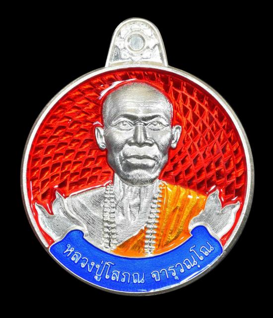ราคาจอง 2200 ไม่เอา เอาเคาะแรกแดง เหรียญ หมุนเงิน หมุนทอง หลวงปู่โสภณ จารุวณฺโณ วัดหลวงอรัญ อ.อรัญประเทศ จ.สระแก้ว เนื้อเงินลงยา พื้นแดง ริบบิ้นน้ำเงิน จีวรเหลือง เบอร์ 21