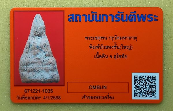 รายละเอียด +++ (..วัดใจ..) ...พระเชตุพน พิมพ์ใหญ่บัวสองชั้น เนื้อดิน กรุวัดมหาธาตุ จ.สุโขทัย + บัตร G-Pra +++