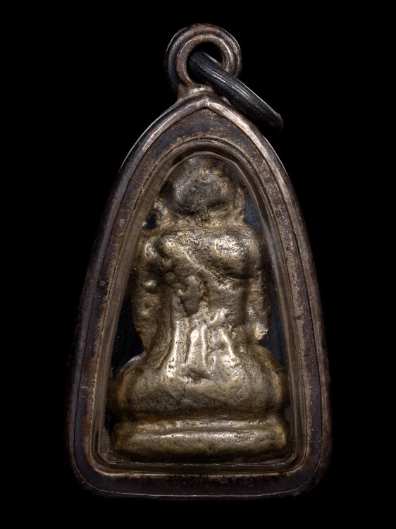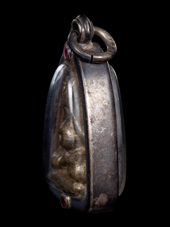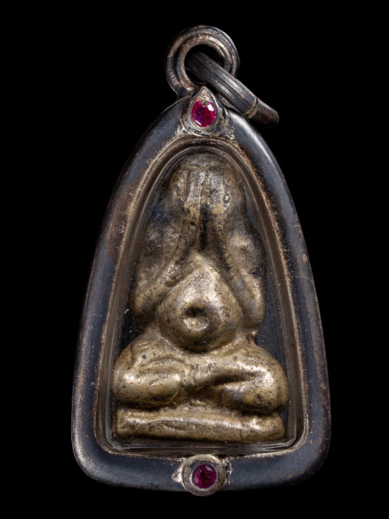 พระปิดตา ผมไม่ทราบที่ เนื้อออกพลายเงิน เลี่ยมเงินเก่า วินเทจ