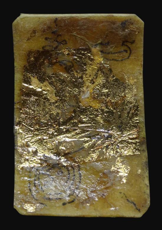 หนังหน้าผากเสือ จารอักขระยันต์ปิดทอง ขนาดประมาณ 1 นิ้ว