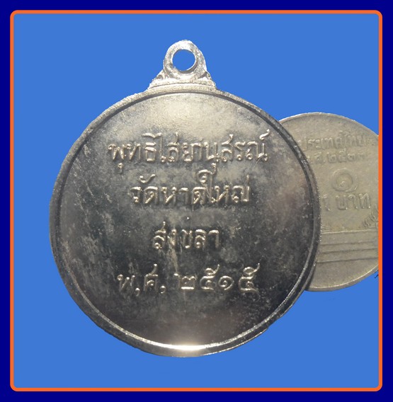 สวย-100-เหรียญพระพุทธไสยาสน์ ปางปาฎิหารย์ วัดหาดใหญ่ สงขลา เนื้ออัลปาก้าชุบนิเกิ้ล พศ. 2515