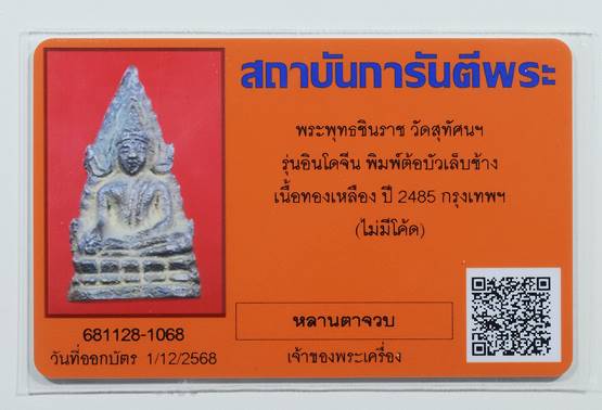 พระพุทธชินราช วัดสุทัศนฯ รุ่นอินโดจีน พิมพ์บัวต้อเล็บช้าง ปี2485 สวยๆครับ