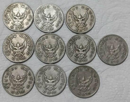 เหรียญ 1 บาท หลังครุฑ พ.ศ.2517 ในสมัยรัชกาลที่ 9 พกติดตัวไว้เป็นมงคล เหรียญสภาพผ่านการใช้งาน ผิวเดิม จำนวน 10 เหรียญ ครับ #1# |
