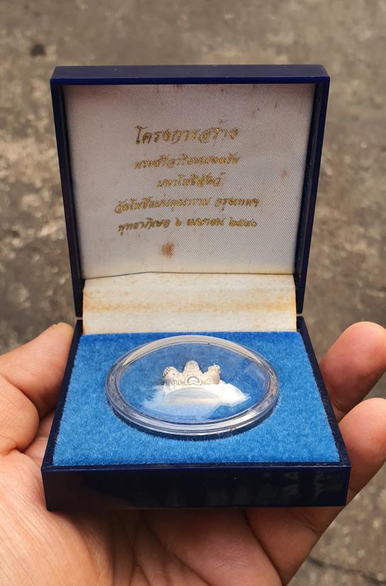 รูปหล่อพระสังกัจจายน์ วัดโพธิ์แมน (เนื้อเงินขัดเงาพ่นทราย) โครงการสร้างพระศรีอาริยเมตตรัย มหาโพธิสัตว์ พ.ศ.2540 พร้อมกล่องเดิมๆจากวัด