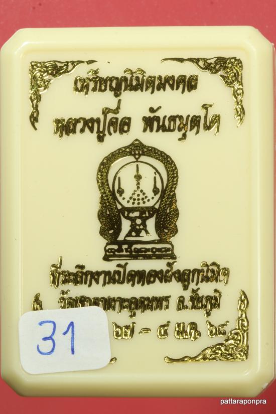 เหรียญหลวงปู่จื่อ รุ่นนิมิตรมงคล ปี 2567-68 เนื้อทองฝาบาตร หมายเลข 31