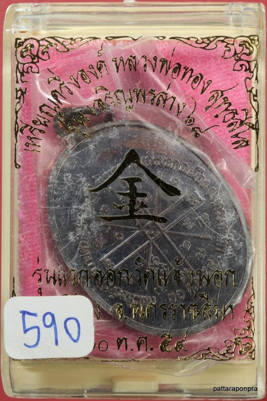 เหรียญหลวงพ่อทอง รุ่นเจริญพรล่าง ปี 2559 เนื้อทองแดง รมดำ ตอก๙รอบ หมายเลข 590