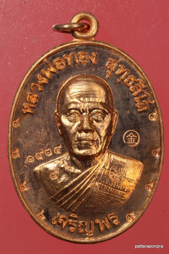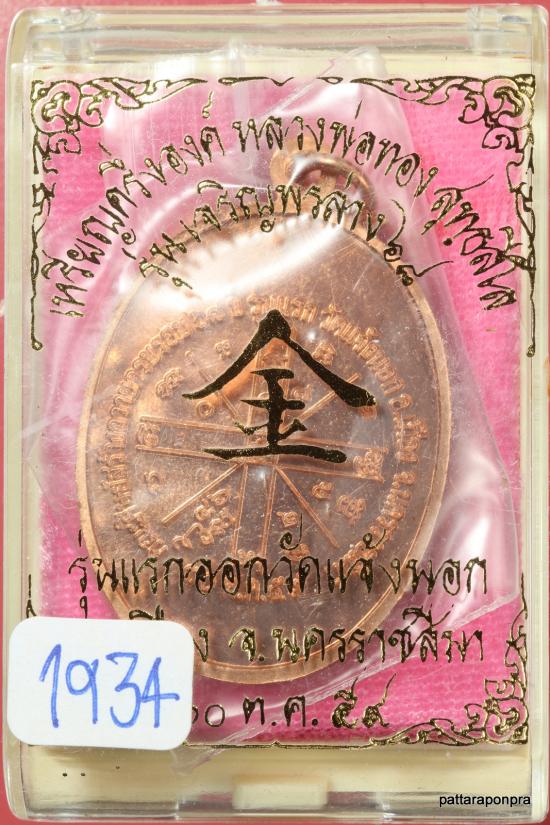 เหรียญหลวงพ่อทอง รุ่นเจริญพรล่าง ปี 2559 เนื้อทองแดงผิวไฟ ตอก๙รอบ หมายเลข 1934