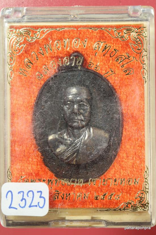 เหรียญหลวงพ่อทอง รุ่นฉลองอายุ ๖๖ ปี ปี 2558 เนื้อทองแดง รมดำ หมายเลข 2323