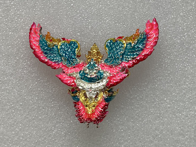 พญาครุฑมังรายศาสตร์ เศรษฐีอนันตทรัพย์ พระอาจารย์วิรุต วัดสันมะเหม้า จ.เชียงราย เนื้อชนวนทองขาว ลงยาองค์ชมพู สูง 4 ซ.ม. พิมพ์ใหญ่ กล่องเดิม |