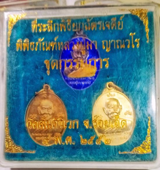 **ชุดกรรมการ 3 เหรียญ***หลวงปู่มา ญาณวโร วัดสันติวิเวก ร้อยเอ็ด งานยกยอดฉัตรเจดีย์ เนื้อเงินลงยาสีน้ำเงิน no. 65 กะไหล่ทอง no.52และ.no.254 ท่านเป็นศิษย์เอกอาวุโสของหลวงพ่อเต๋ คงทอง วัดสามง่าม นครปฐม