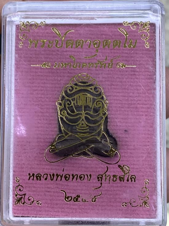 หลวงพ่อทองวัดบ้านไร่ พระปิดตาอุตตโม รุ่นมหาโภคทรัพย์ เนื้อชนวน เลข924 กล่อง