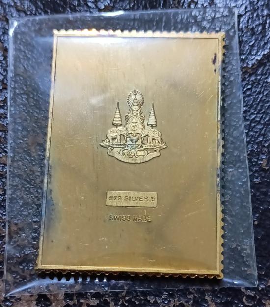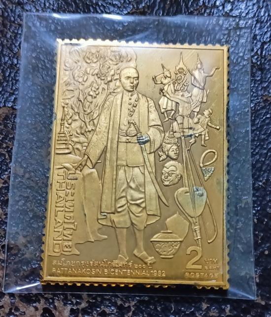 เหรียญแสตมป์ รัชกาล เงินชุบทอง หลังตรากาญจนาภิเษก ขนาด3.5x5เซน