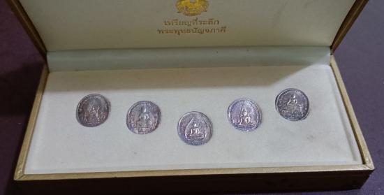 เหรียญ ร9 เงินพิมพ์เล็ก ชุดพระพุทธปัญจภาคี ครบชุด 5 เหรียญ ปี พ.ศ.2539 พร้อมกล่อง