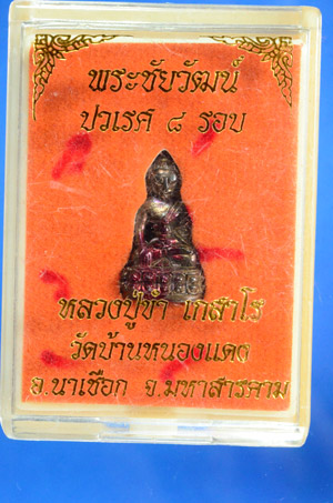 พระชัยวัฒน์ ปวเรศ ๘ รอบ หลวงปู่ขำ เกสาโร วัดบ้านหนองแดง เนื้อนวะโลหะ จังหวัดมหาสารคาม พร้อมกล่องสวยครับ (ตรงในกล่องมีรอยเจิม จารครับ)