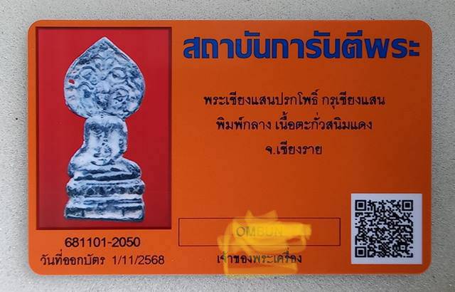 พระเชียงแสนปรกโพธิ์ พิมพ์กลาง เนื้อตะกั่วสนิมแดง กรุเชียงแสน จ.เชียงราย จัดเป็นพระพิมพ์ยอดนิยมของเมืองเชียงรายครับ องค์นี้พระสภาพสวย พร้อมบัตรรับรองจีพระ |