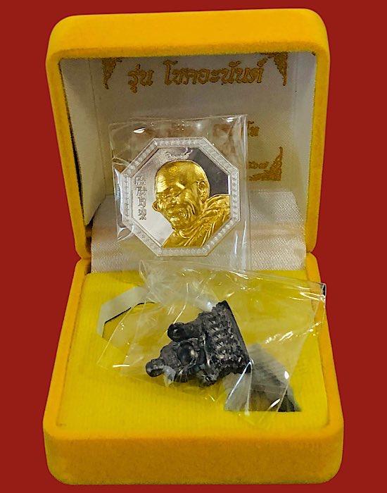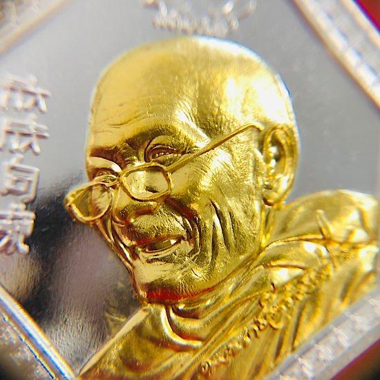 หลวงปู่มหาศิลา โชคอนันต์ เนื้อเงินหน้าทองคำ ผิวกระจกใสวิ้งๆ จมูก100 เลข540= 9 กล่องเดิมราคาจอง6,999 สวยแชมป์ๆ