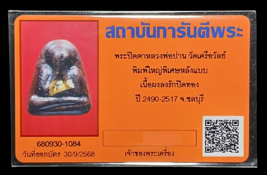 เคาะเดียวต่ำกว่าทุน...ปิดตาหลวงพ่อปาน วัดเครือวัลย์ ชลบุรี พิมพ์ใหญ่พิเศษหลังแบบ เนื้อผงลงรักแดงๆ ปิดทองเดิม ยุคต้น ปี 2490-2517 พระสวยครับ พร้อมบัตรรับรองจากทางเว็บ |