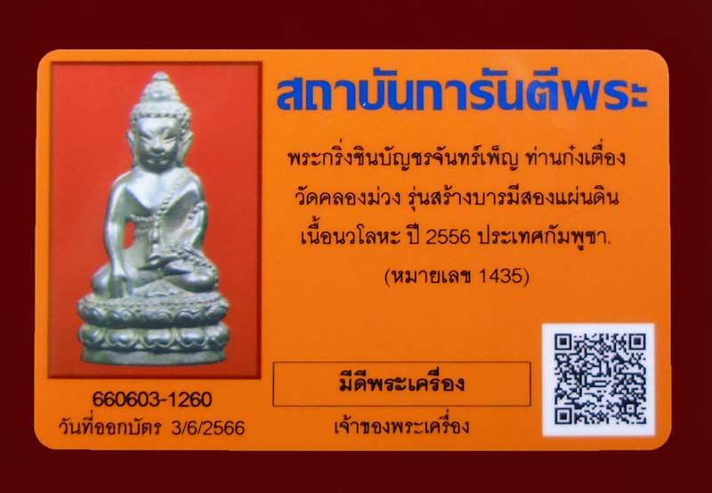 แดงที่เคาะแรก !!! พระกริ่งชินบัญชรจันทร์เพ็ญ เนื้อนวะโลหะ ท่านก๋งเตื่อง เตชปัญโญ วัดคลองม่วง จ ตราด มีกล่องเดิม สร้าง 2,500 องค์ + บัตรพระแท้ หมายเลข 1435