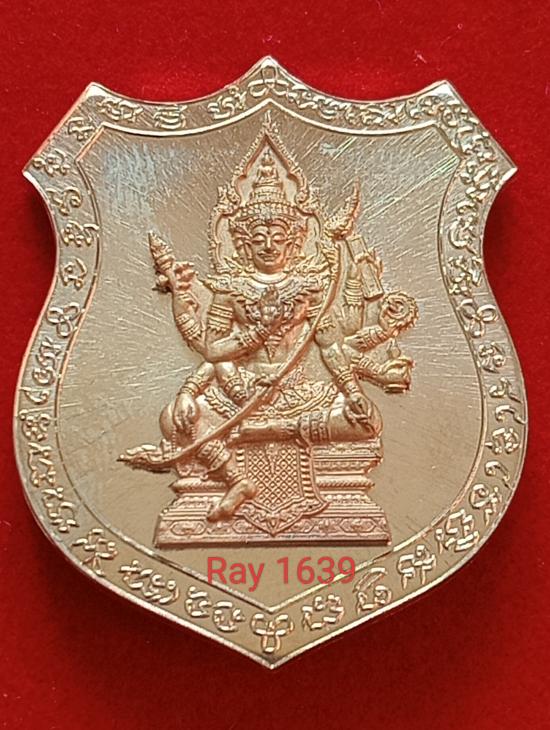 เหรียญท้าวมหาพรหม เจ้าสัวพันล้าน จัดสร้างโดยคุณบอยท่าพระจันทร์ เนื้ออัลปาก้า หน้ากากชนวน หลังยันต์ชนวน เลขโค๊ต ๑๖๓๙
