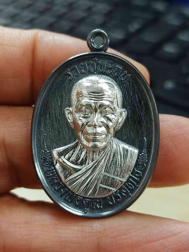 วัดใจ 150 เลขแม่ทัพ เหรียญชนะจน หลวงพ่อคูณ วัดบ้านไร่ จ.นครราชสีมา 2568 ทองแดงรมดำ หน้ากากชุบเงิน หมายเลข 1 กล่องเดิม