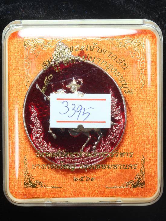 เลขสวย 3395 พิมพ์ใหญ่ กะไหล่เงินลงยาแดง เหรียญสมเด็จพระเจ้าตากสินมหาราช 250 ปีสถาปนากรุงธนบุรี วัดหงส์รัตนารามราชวรวิหาร ปี 2561 ตรวจ/แก้ไขแบบ โดย อาจารย์เฉลิมชัย โฆษิตพิพัฒน์ เหรียญสวยน่าเก็บ//No |