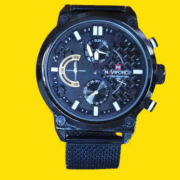 ์นาฬิกา NAVIFORCE สีดำใช้งานได้ สายเหล็กดำ