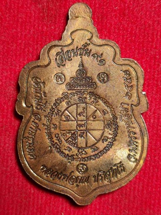 เหรียญเสมาเลื่อนขั้น 91 หลวงพ่อคูณ ปริสุทโธ ออกวัดบ้านไร่ ปี 2557 เนื้อ ทองแดงขัดเงา ปีะกบ 3 ชิ้น กรอบเงินลงหน้ากากเงินจีวีเหลือง หมายเลข 23 สภาพสวย เคียวแดง