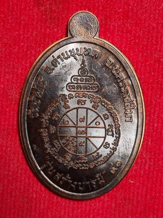 เหรียญหลวงพ่อคูณ ปริสุทโธ รุ่น สร้างบารมี 91 ตำนานผู้สร้างคนเดียวกันกับ ปี 19 รุ่นแรก ที่โด่งดังมาแล้ว ออกวัดบ้านไร่ ปี 57 เนื้อ ทองแดงรมดำพิมพ์กรรมการไม่ตัดปีกหลังยันต์ หมายเลข 26 ตอกโค๊ตเลข 9 เก้าตั