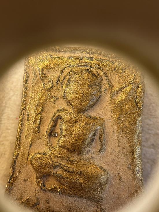 พระเนื้อดินเก่า คราบทองเดิม องค์นี้เสน่ห์จัดมาก ผิวแห้งแบบธรรมชาติ เนื้อดินละเอียดแห้งตัวดี มีทองเก่าติดผิวเดิม ๆ เพิ่มความขลังและความโบราณให้ทั้งองค์