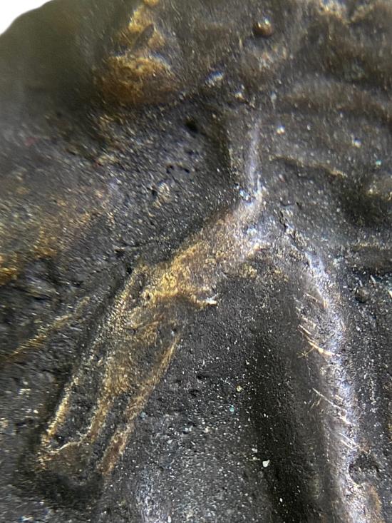 องค์นี้ผิวเดิมโบราณมาก ลักษณะการผุของโลหะชินดูชัด ทั้งด้านหน้าและหลัง