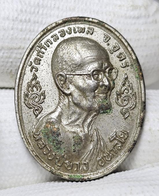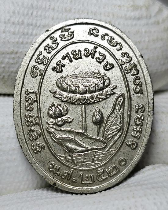 เหรียญหลวงปู่ขาว อนาลโย วัดถ้ำกลองเพล รุ่นหายห่วง ปี 2520 เนื้อทองแดงกะไหล่เงิน