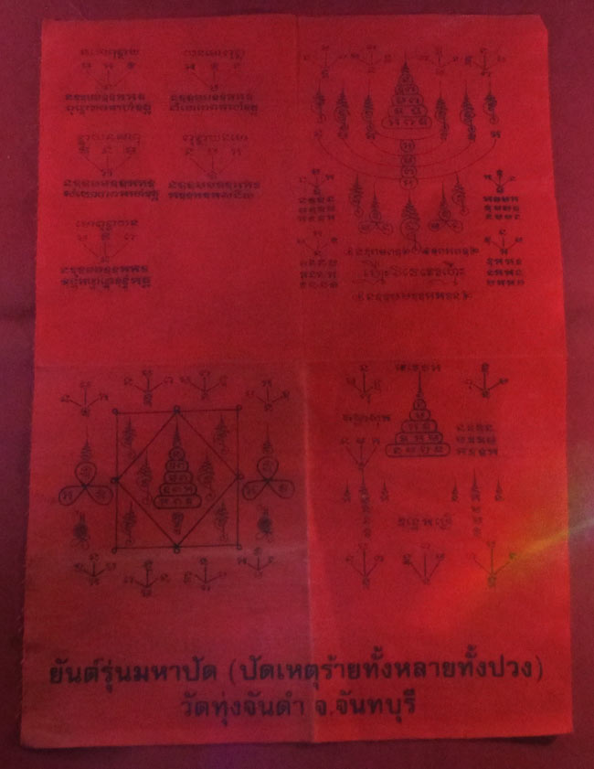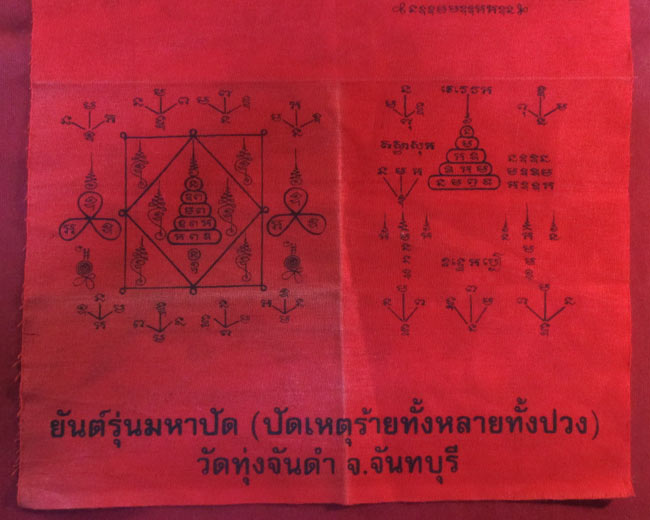 ผ้ายันต์ วัดทุ่งจันดำ ต.คลองพลู กิ่ง อ.เขาคิชฌกูฏ จ.จันทบุรี ครับ (พระบ้าน ครับ) |