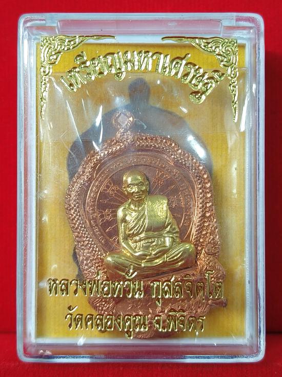 เคาะเดียว+ เหรียญนั่งพาน รุ่นมหาเศรษฐี หลวงพ่อหวั่น วัดคลองคูณ เนื้อทองแดงหน้าทองทิพย์