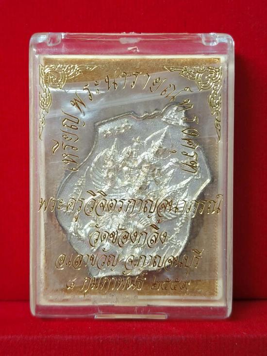 เคาะเดียว+ เหรียญนารายณ์ทรงครุฑ วัดช่องกลิ้ง จ.กาญจนบุรี รุ่นชนะมาร๕๙ เนื้อกระไหล่เงิน
