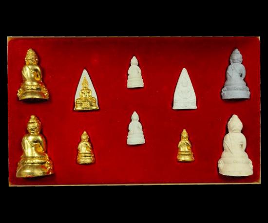 พระกริ่ง พระชัยวัฒน์ วัดสุทัศน์ พุทธโสธร รุ่นไตรมาส เนื้อผง ปี2534 ชุด 10 องค์ แดงเคาะแรก |