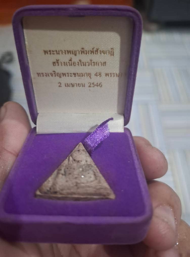 พระนางพญา สธ. พิมพ์สังฆาฏิ "48 พรรษา สมเด็จพระเทพฯ" เนื้อว่าน 108 พ.ศ. 2546 ฝังตะกรุดเงิน สร้างเนื่องในวโรกาสทรงพระเจริญพระชนมายุ 48 พรรษา พร้อมกล่องเดิมค่ะ |