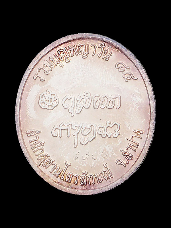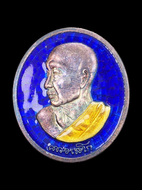 ###### เหรียญหลวงพ่อเกษม เขมโก รวมบุญพญาวัน 84 ปี 2538 เนื้อเงินลงยา ตอกโค๊ต หมายเลข 490 กล่องเดิม สวยเดิม ######