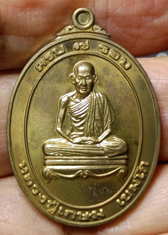 เหรียญครบ 7 รอบ หลวงพ่อเกษม เขมโก ปี 38 เนื้อฝาบาตร พร้อมกล่องเดิมจากวัด เบาๆค่ะ