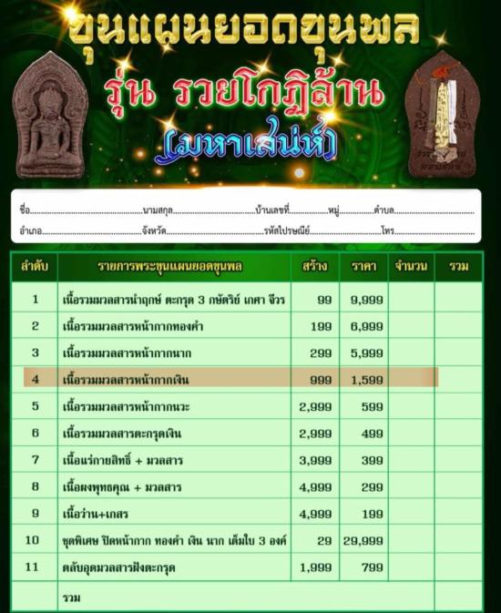 ขุนแผนยอดขุนพล รุ่น รวยโกฏิล้าน มหาเสน่ห์ หลวงปู่มหาศิลา หลวงปู่ศิลา สิริจันโท วัดพระธาตุหมื่นหิน ธรรมอุทยาน จ.กาฬสินธุ์ เนื้อรวมมวลสาร หน้ากากเงิน ซีนเดิมลุ้นเลขสวย