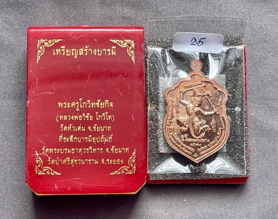 วัดใจของดี! เหรียญเสมาสร้างบารมี หลวงพ่อวิชัย วัดหัวเด่น "เนื้อทองแดงองค์ทองขอบนวโลหะ" (เหรียญลุ้นพิเศษ) เลขสวยต้นๆ