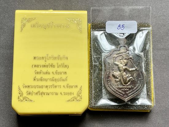 วัดใจของดี! เหรียญเสมาสร้างบารมี หลวงพ่อวิชัย วัดหัวเด่น "เนื้อนวโลหะหน้ากากเงินขอบกนกเงิน" (เหรียญลุ้นพิเศษ) หายากสุดๆ