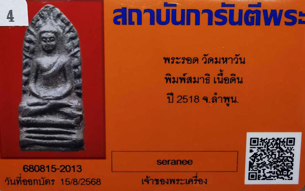 พระรอด วัดมหาวัน พิมพ์สมาธิ(มีหน้าตา) เนื้อดิน ปี2518 จ.ลำพูน + บัตรG-pra สภาพเดิมค่ะ